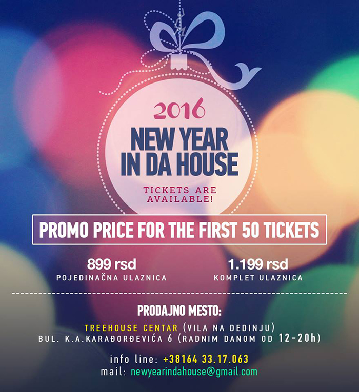 NOVA GODINA 2016: Ludilo u predratnoj vili na Dedinju se nastavlja, ovog puta – u trajanju od 2 dana! U težnji da doprinesemo održavanju starih i uspostavljanju novih kvaliteta i standarda organizacije koji će poštovaocima pravog underground zvuka pričiniti još veće zadovoljstvo, odlučili smo da samo za ovu priliku otvorimo kompletan gornji sprat, po prvi put, na kome će biti poseban stage i chill zona, tokom novogodišnje noći i reprize.
