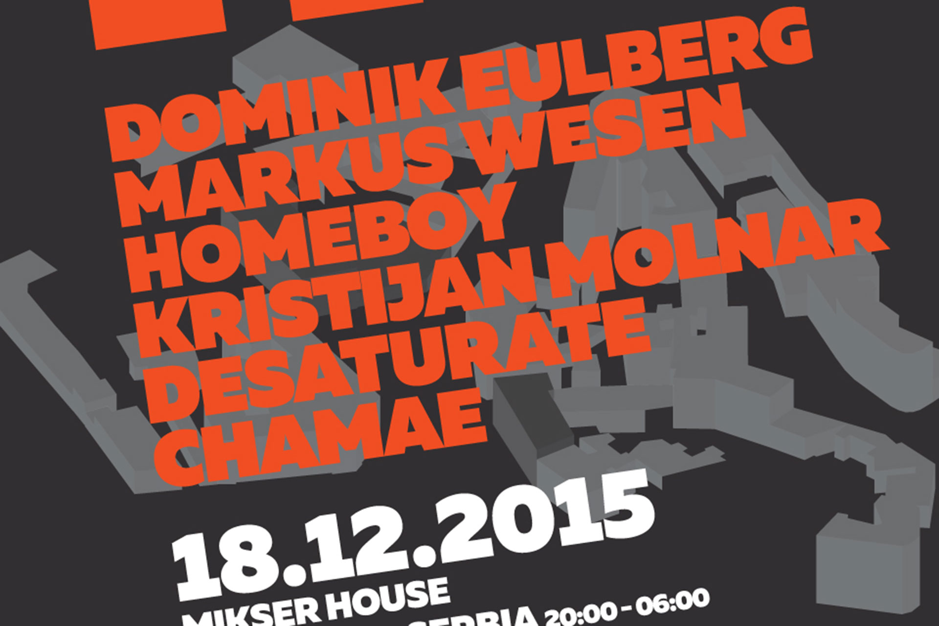 Hello! u svom prvom predstavljanju, 18. Decembra u Mikser House-u ugostće 6 DJ-eva među kojima su poznata imena sa svetske muzičke scene, regiona i neizostavna domaća podrška. Muzički će biti karakterisan mekšim, melodičnijim techno pravcima. Mikser House će vizuelno biti prilagođen Hello! konceptu i publika će pored u vrhunskom zvuku koji je najbitniji deo jednog kvalitetnog događaja, moći i vizuelno da uživa u projekcijama VJ Kotam-a.