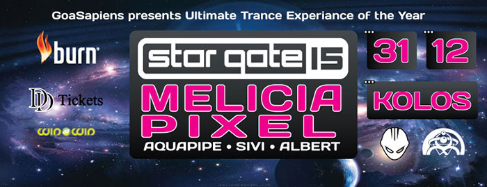 NOVA GODINA 2016: 15. po redu Star Gate pod nazivom „Ultimate Trance Expiriance Of The Year“ i ove Nove Godine, na brodu Kolos, priprema nezapamćeni spektakl. Obožavaoci psihodeličnog zvuka imaće priliku da čuju live izvođenje sastava Melicia. a potom da uživaju u DJ setu poznatog Pixel-a. Ono što organizatori izdvajaju je da izraelski sastav Melicia po prvi put dolazi u punom sastavu tj. da će uz pratnju producenta i DJ-a Avrham Ilouz-a nastupati i Odeliya Iloose Almog, ženski vokal koji upravo ovaj sastav čini toliko poznatim. GoaSapiens ekipa poziva sve na ovaj novogodišnji party i obećava nezaboravan provod.