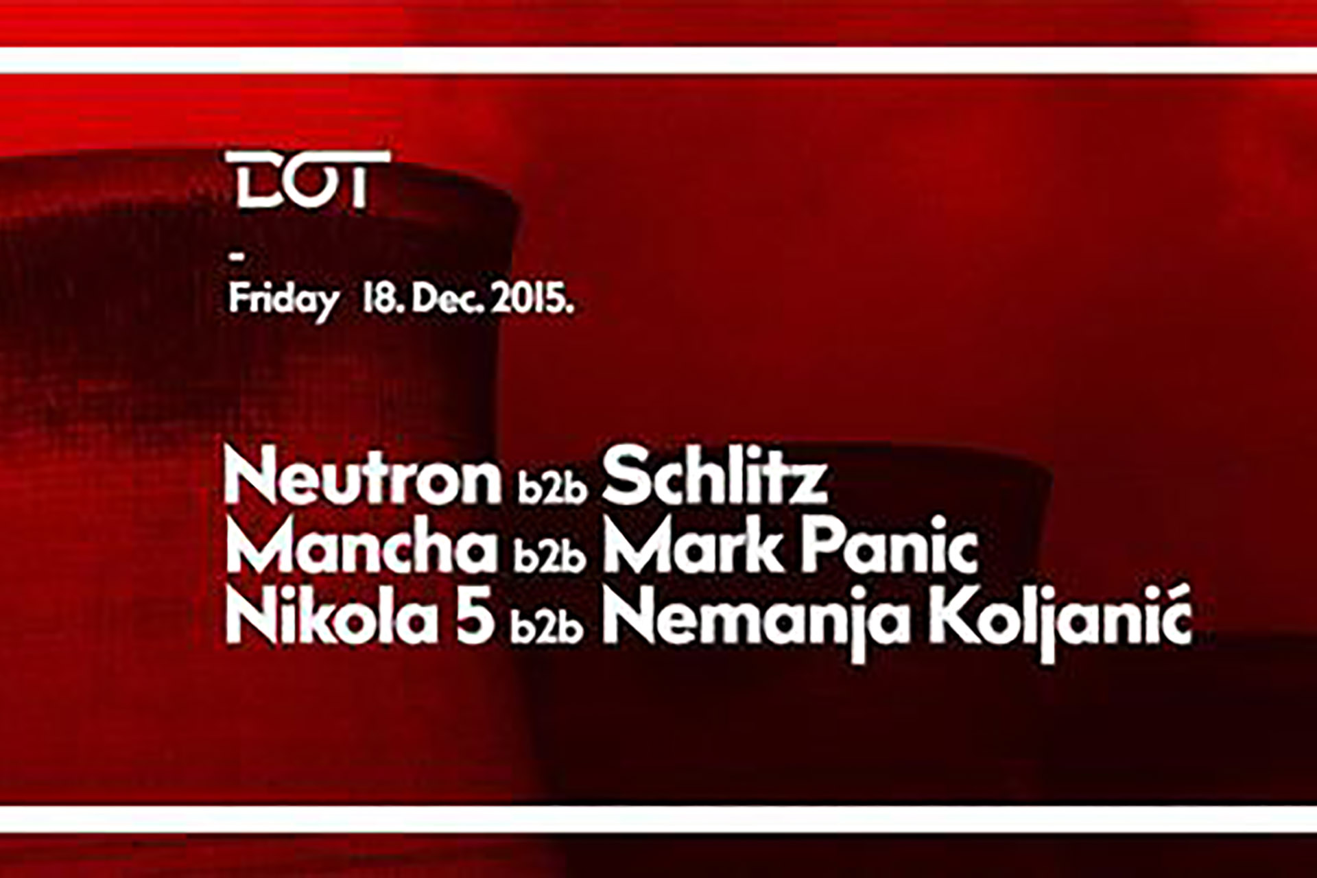 Klub DOT vam u petak 18.12. predstavlja trostruki TECHNO b2b SPECIJAL.