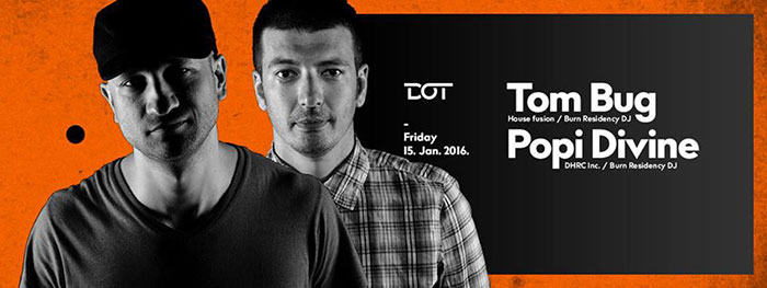 Prvo izdanje Divine Therapy žurke, a gost će biti jedini finalista DJ takmičenja burn Residency koji je vrteo na tri deka i oduševio legendu Carl Cox-a, Tom Bug. Iste večeri nastupiće još jedan burn Residency DJ, ujedno i domaćin ove žurke, a to je Popi Divine. Vrteće se groovy tech house, deep, a možda malo i progressive-a.