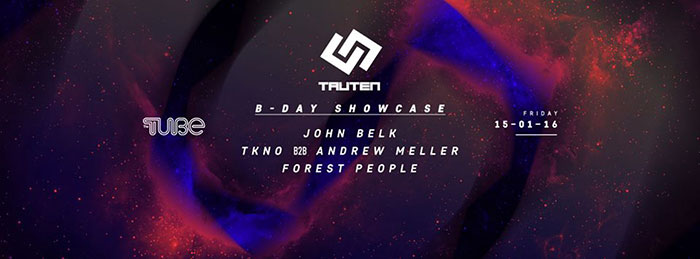 Poznata domaća techno etiketa “Tauten“, 15. januara slavi prvu godinu rada u beogradskom klubu The Tube. Na rođendanskom showcase-u nastupiće TKNO, Andrew Meller, John Belk i bosanski DJ i producent Forest People.