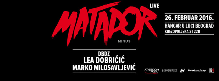 Ovo će biti prvi put da Matador gostujei u Beogradu, a drugi put u Srbiji nakon nastupa na Exit festivalu 2013. godine. Lajnap će tog 26. februara u Hangaru zaokružiti Lea Dobričić, Marko Milosavljević i DBDZ. Do ponedeljka u prodaji su ulaznice po promo ceni od 800 dinara, zato požurite i nabavite svoju kartu – a za one koji žele da u ovom spektaklu uživaju iz udobnijeg aranžmana, u prodaju su puštene i VIP karte po ceni od 1500 dinara. Ulaznice se mogu kupiti na svim prodajnim mestima Eventima i Gigstixa, kao i online na www.eventim.rs i www.gigstix.com.