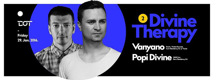 Drugo izdanje Divine Therapy žurke, a gost će biti Vanyano jedan od najboljih producenata elektronske muzike na ovim prostorima. Predstavljao je BiH na burn takmičenju 2015. godine i ušao u Top 6. Iste večeri nastupiće još jedan burn Residency DJ, ujedno i domaćin ove žurke, a to je Popi Divine.
