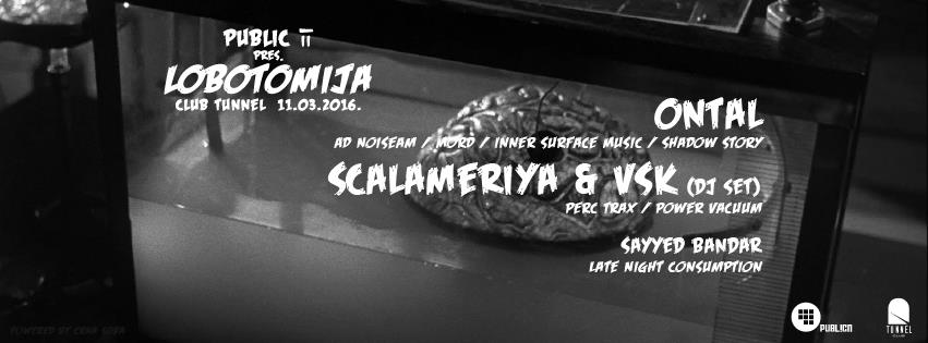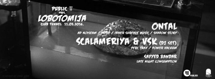 Za ljubitelje distortovanih zvukova, razbijačkih udaraca i industrijskih mindfuck tripova, petak 11.3. je savršen za to. LOBOTOMIJA je novi serijal Public P žurki fokusiran na promociji apstraktnog lica techna kao njihov nov način pristupa muzici snažnim fizičkim putem kroz zvučne talase. Kako bi na premijeri serijala žurki imali priliku da osetite pravi zvuk lobotomije, klub Tunnel predstavlja jednu od zvezdi Perc Traxa, VSKa.