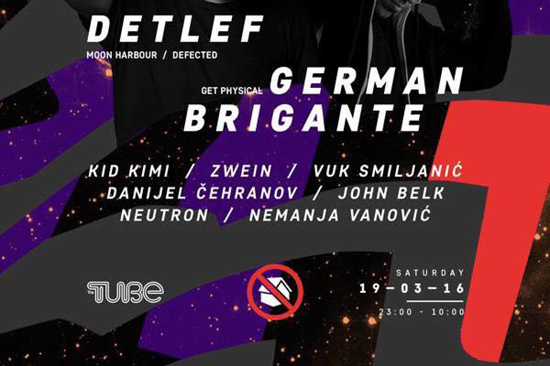 U subotu 19.03. nas očekuje pravi pravi techno spektakl u „veselom podrumu u Siminoj„, klubu The Tube. Naime, ekipa koja organizuje jedan od eventova koji vrtoglavom brzinom postaje sve popularniji na domaćoj underground sceni, serijal after žurki pod nazivom Neću Kući, organizuje prvi „maratonski“ Neću Kući rejv u Tjubu. Sa početkom u subotu od 23:00 pa narednih 11 (a možda i više) sati, tj. sve do 10:00 narednog jutra, specijalno za najtvrđe i najvernije beogradske klabere muziku će vrteti 10 imena domaće i internacionalne techno scene. Među njima će se naći po redu Neutron, Danijel Čehranov, German Brigante, španski DJ i producent koji je do sada izdavao za imena među kojima su get Physical, Dirtybird, Monaberry, Saved i mnoge druge; nakon njega na redu su Vuk Smiljanić, Kid Kimi, a zatim još jedan stranac i to Detlef, jedno od imena u usponu svetske scene, koji je do sada sarađivao sa teškašima među kojima su Marco Carola, Matthias Tanzmann, Yousef, Hot Since 82, Jamie Jones i drugi; a za one najupornije koji nemaju nameru da idu kući pre nego što se upali svetlo u klubu muziku će do kraja žurke puštati Zwein, beogradski duo koji čine Nemanja Tankosić i Nenad Jovanović, zatim Nemanja Vanović i na kraju John Belk.