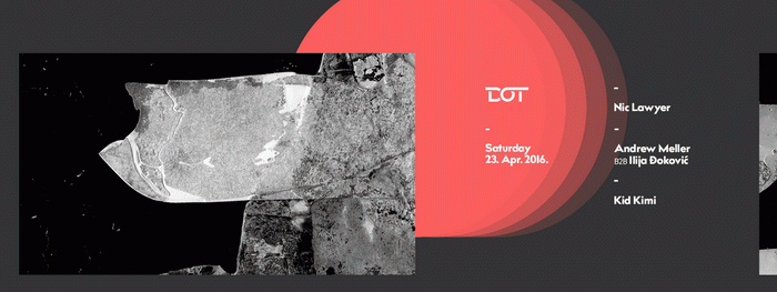 Subota, 23. april u Dot donosi još jednu odličnu zabavu: muziku će puštati Nic Lawyer, Andrew Meller b2b Ilija Djoković i Kid Kimi. Zvuk će se kretati od deep-a i dub-a, preko tech housa i techna, a vrata se otvaraju u 23h.