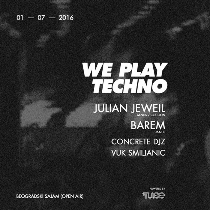 Ljubitelji dobrog techna mogu da odahnu jer su glasine istinite – Julian Jeweil i Barem stižu pravo na Beogradski Sajam 1. jula, a sve to u okviru We Play Techno žurki, na kom će im domaću podršku pružiti Vuk Smiljanić i Concrete DJs. Prvih 100 najbržih moći će da svoje karte za najbolji techno event ovog leta nabave po ceni od samo 590 dinara.