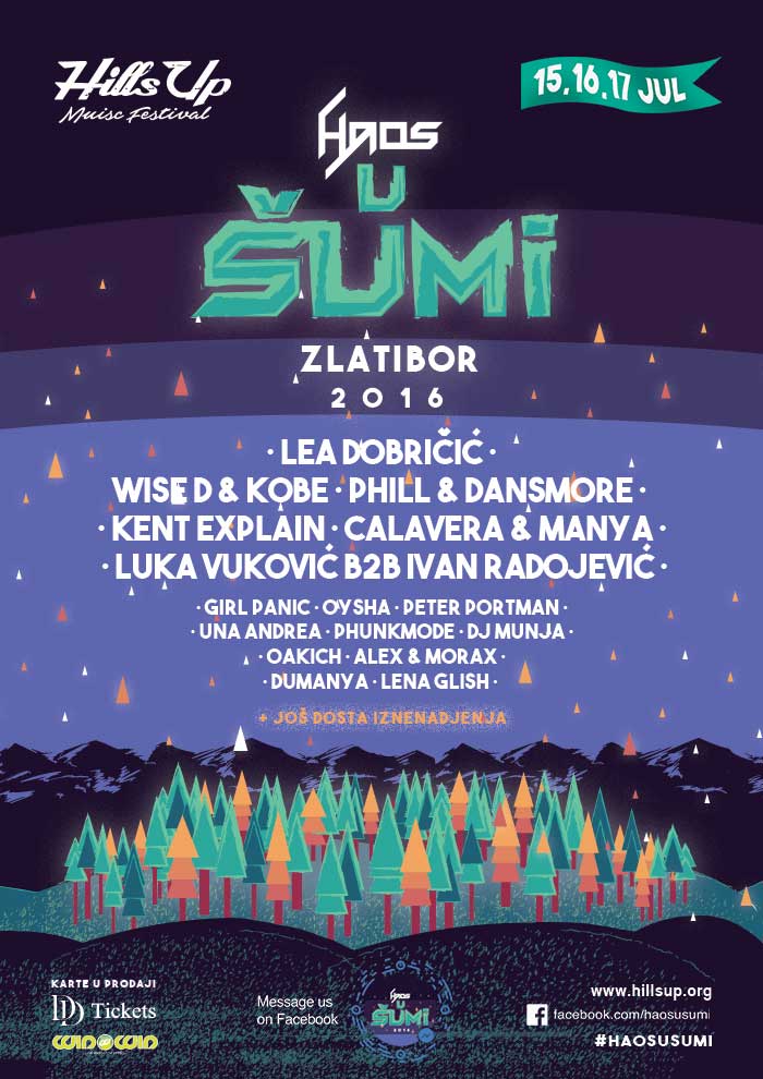Od 15. do 17. jula na Zlatiboru se održava treći po redu HillsUP muzički festival. Ove godine će, po prvi put, postojati dva festivalska stejdža. “Main Stage” će, kao i predhodnih godina, ugostiti najpoznatija imena rok i hip-hop scene dok će na “Haos u Šumi” bini uz techno zvuke i poseban vizuelni doživljaj posetici uživati do ranih jutarnih časova.