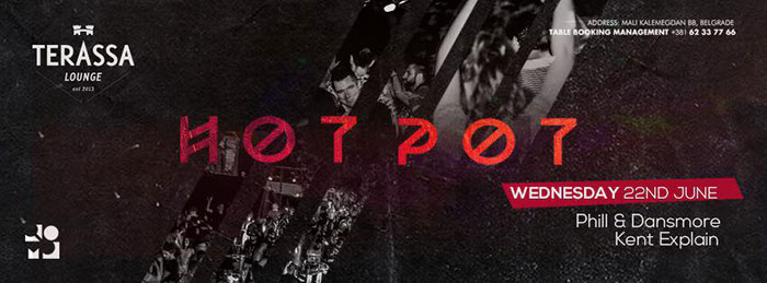 Autori ovog serijala su prošle srede zvanično otvorili drugu HOTPOT sezonu i to u svom prepoznatljivom stilu – maratonskom žurkom koja je trajala do šest sati ujutru. Od ove ekipe ništa manje ne treba očekivati ni ove srede. Phill & Dansmore i Kent Explain će vas provozati kroz najbolji house, tech-house i techno pod otvorenim nebom na Terassi smeštenoj u neverovatnom ambijentu Kalemegdanske tvrđave.