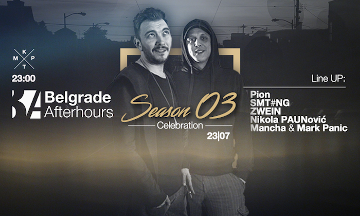 Organizacija Belgrade afterhours proslaviće svoju treću godišnjicu na klupskoj sceni i to u KPTM bašti u subotu, 23. jula s početkom od 23 časa, a pored Manče i Mark Panic-a posetioci će moći da čuju i Piona, Zwein, SMT#nG i Nikolu Paunovića.