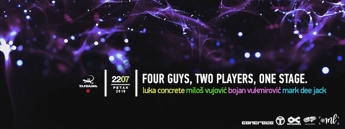 Za prvu polovinu večeri su zaduženi Mark Dee Jack i Miloš Vujović, koga posle dužeg vremena ponovo imamo priliku da slušamo u Srbiji. Dvojac obećava da će ne samo dobro zagrejati već i usijati rejvere koje čeka djuskanje do ranih jutarnjih časova kada kormilo na brodu preuzimaju Concrete DJz. Luka Concrete i Bojan Vukmirović u B2B setu se spremaju da oduvaju flor do samog kraja negde oko 9h ujutru.