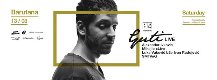 U subotu, 13. avgusta, na najlepšu letnju pozornicu u Beogradu stiže Guti. Sve do 2006. godine, ovaj argentinac nastupao je kao pijanista i džez muzičar, a početkom 2000-ih osvajao je brojne nagrade kao član popularnog južnoameričkog rok benda. Ubrzo potom, njegovo interesovanje prelazi na house muziku, a Guti postaje jedan od najcenjenijih producenata ovog žanra. Jedinstveni spoj jazz i latino ritmova sa čistom elektronikom jesu zaštitni znak ovog argentinca, koji je, kao umetnik sa etikete Desolat, dobio priliku da svoj talenat iznova dokazuje u najboljim klubovima širom sveta. Ove subote Guti stiže u Barutanu u organizaciji ekipe “Kultura”, a kao domaća podrška nastupiće Alexandar Ivkovic, Mihajlo xLive, Luka Vukovic b2b Ivan Radojevic i SMT#nG. Ulaznice se mogu kupiti u pretprodaji na svim prodajnim mestima Eventima i Gigstixa, po ceni od 600 dinara.