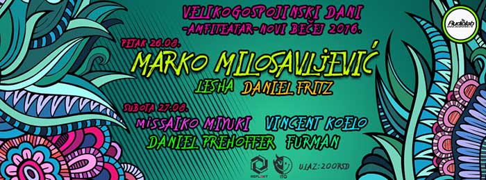 Naravno, to je samo početak. U subotu takođe igramo celu noć! Iza miks pulta 27. avgusta biće Furman, Vincent Koelo, Miss Aiko Miyuki i Daniel Prehoffer. Zbog njih će amfiteatar biti dobro prodrman, to je sigurno.