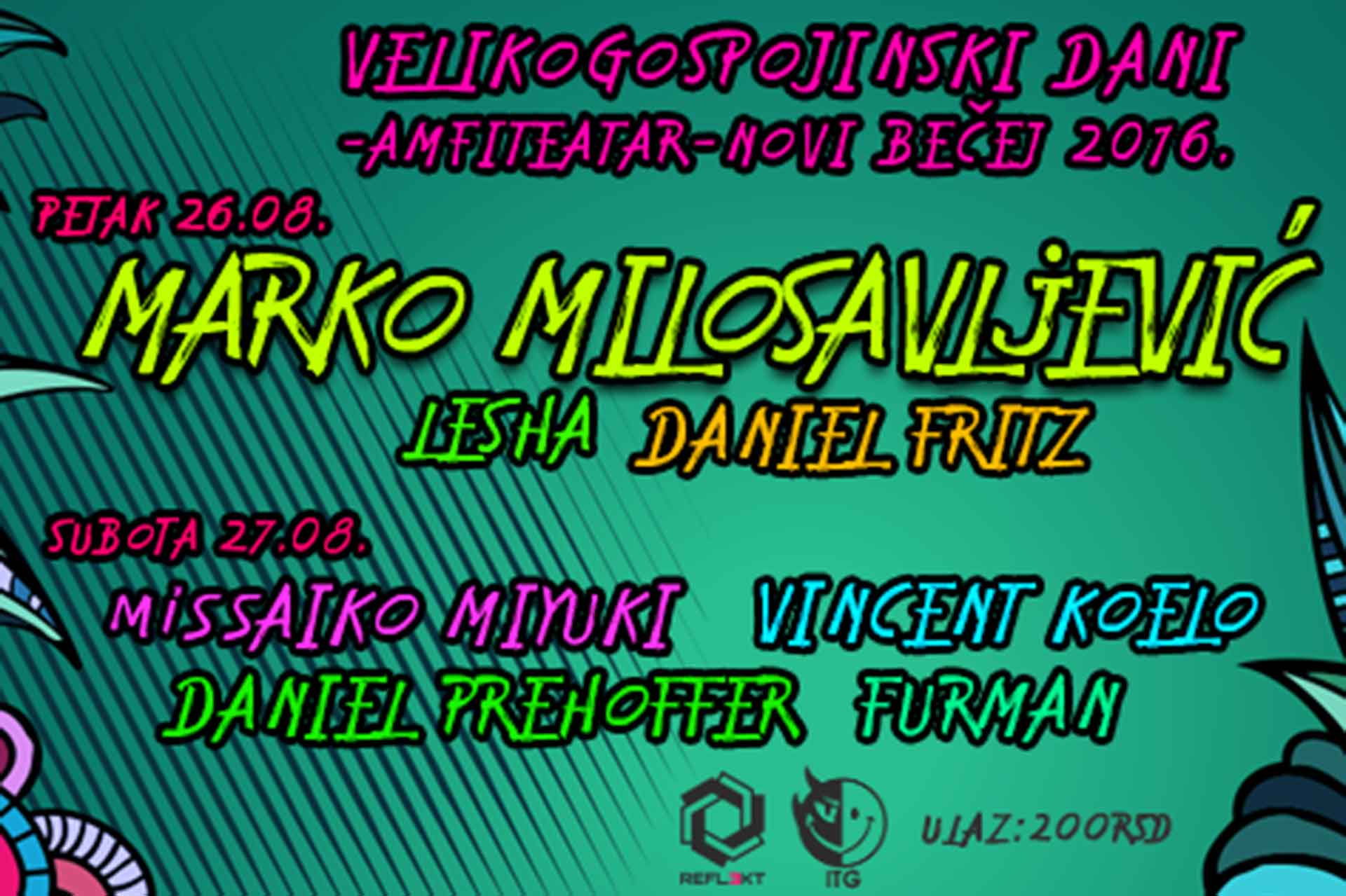 Tokom Velikogospojinskih dana, koji se tradicionalno održavaju krajem avgusta, ovo pitomo mesto na levoj obali Tise reflektovaće dobre vibracije. Na najatraktivnijoj lokaciji 26. avgusta gostuju Marko Milosavljević, Daniel Fritz i Lesha.