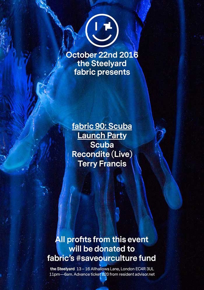Kako je fabric zatvoren žurka povodom izdanja mixa će se održati u The Steelyard-u, a pored Scube nastupaju Recondite (Live) i Terry Francis. Sav prihod od žurke ide u #SaveOurCulture fond. Ostale žurke koje fabric organizuje održaće se u klubovima kao što su Sankeys Ibiza, The Warehouse Project i Great Suffolk Street Warehouse u Londonu sa Darius Syrossian-om, Levon Vincent-om i Ninom Kraviz kao hedlajnerima.