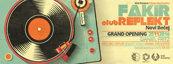 Ovaj značajan događaj, koji je pokazatelj da epicentar dobrih žurki nisu samo veliki gradovi, ugostiće jednog od osnivača andergraund klupske scene u Srbiji. DJ koji još od početka osamdesetih praši našom scenom, poznat i kao deo organizacije Wet Dreams i Noise Destruction, a to je – Fakir!