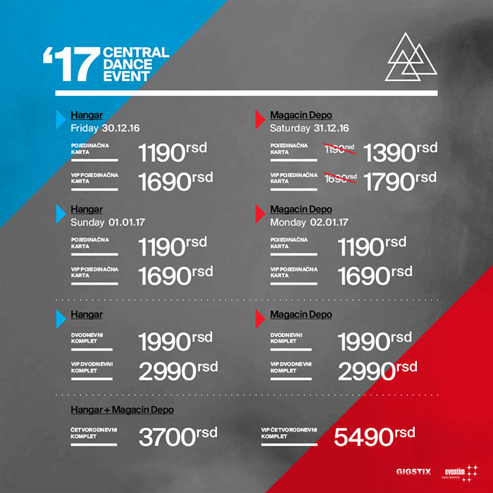 Nova cena važi za regularne i VIP karte za 31.12, a dvodnevni paketi + VIP za Hangar ili Depo i četvorodnevne ulaznice + VIP su još uvek po staroj ceni. Međutim iz organizacije su nam potvrdili da će uskoro poskupeti sve karte.