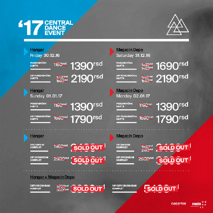 A ukoliko još uvek niste nabavili svoju ulaznicu za Central Dance Event 2017, pogledajte za koji dan su ostale karte, jer je Novogodišnji festival još malo pa rasprodat.