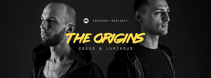 Večeras ćete u Disko Baru Mladost moći da prisustvujete prvom party-ju projekta pod nazivom „The Origins“ koji su započeli mladi i perspektivni producenti Coeus i Luminous. Muzika je bazirana na UK house zvuku uz primese deep i tech house-a, koncipirana tako da čini celinu koji projekat „The Origins“ i čini prepoznatljivim.