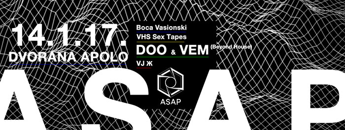 All Stars Alliance Pančevo – ASAP, poznata grupa zaljubljenika u elektronsku muziku, ove subote organizuje svoju prvu žurku u 2017. godini. Za dekovima dvorane Apolo lokalnog Doma omladine, te večeri naći će se Dušan Predojević Doo i Nikola Vemić, članovi kolektiva Beyond House.