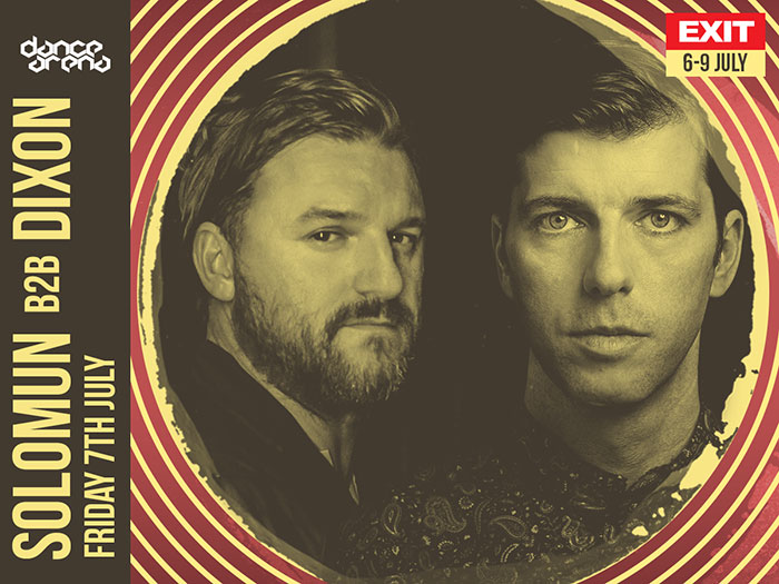 EXIT Dance Arena upravo je proglasila svoj zvanični praznik u petak, 7. jula kada ćemo dočekati jutro uz dvojicu neprikosnovenih lidera svetske house scene, Solomuna i Dixona! Za noć kada su već najavljeni Jamie Jones i Black Coffee, Solomun i Dixon donose, specijalno za mts Dance Arenu, tročasovni back2back sunrise set! Dugogodišnji prijatelji nalaze se među pet prvoplasiranih na listi čuvenog magazina Resident Advisor, a Dixon drži rekord sa četiri godine uzastopnom prvom pozicijom. Obojica su i među pet najboljih na drugoj prestižnoj listi, sajta Beatport, s tim što je tu Solomun na tronu! Vlasnici su i dve najuspešnije izdavačke kuće u poslednjih nekoliko godina, Innervisions (Dixon) i Diynamic (Solomun) koje objavljuju antologijske numere savremene elektronske muzike i svojim zvukom privlače najtalentovanije producente kao što su Recondite, Hot Since 82, Âme ili David August.