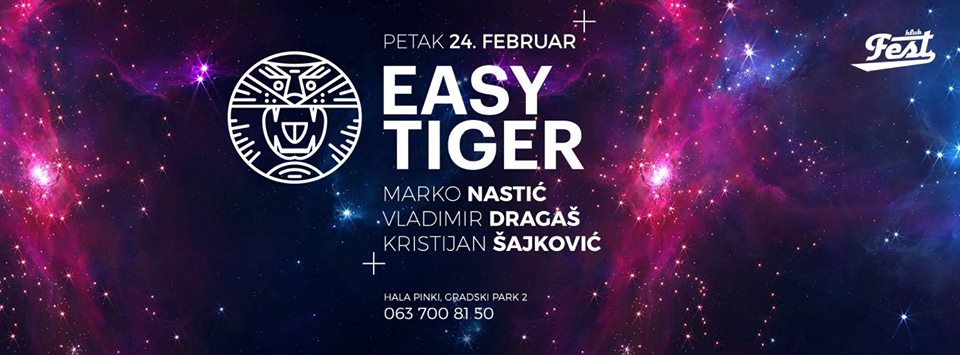 Serijal žurki pod nazivom „Easy tiger“, nastavlja se u klubu Fest u Zemunu. Ovog puta 24. februara u poznatom klubu uz Marka Nastića ekipu Easy Tiger-a čine i Vladimir Dragaš i Kristijan Sajković