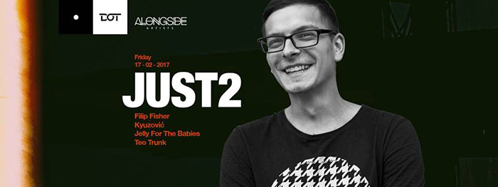 Klub Dot vam predstavlja veoma uspešnog i ambicioznog DJ-a i producenta iz Rumunije JUST2-a, koji će nastupiti u klubu u petak 17. februara. Pult će sa njim deliti ozbiljna domaća ekipa, naširoko poznata ovdašnjoj publici, u sastavu DJ Filip Fisher, Jelly For The Babies, Kyuzovic i Teo Trunk.