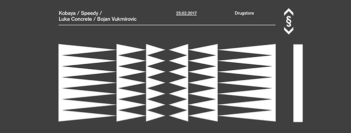 U subotu 25. februara Beogradska techno katedrala Drugstore dočekuje veterane klubske scene. Kobaya, poznat publici po njegovim hitovima i produkcijom, Speedy ponosni vlasnik etikete Lucky Light LTD kao i Luka Concrete i Bojan Vukmirović, članovi Concrete DJz klana.