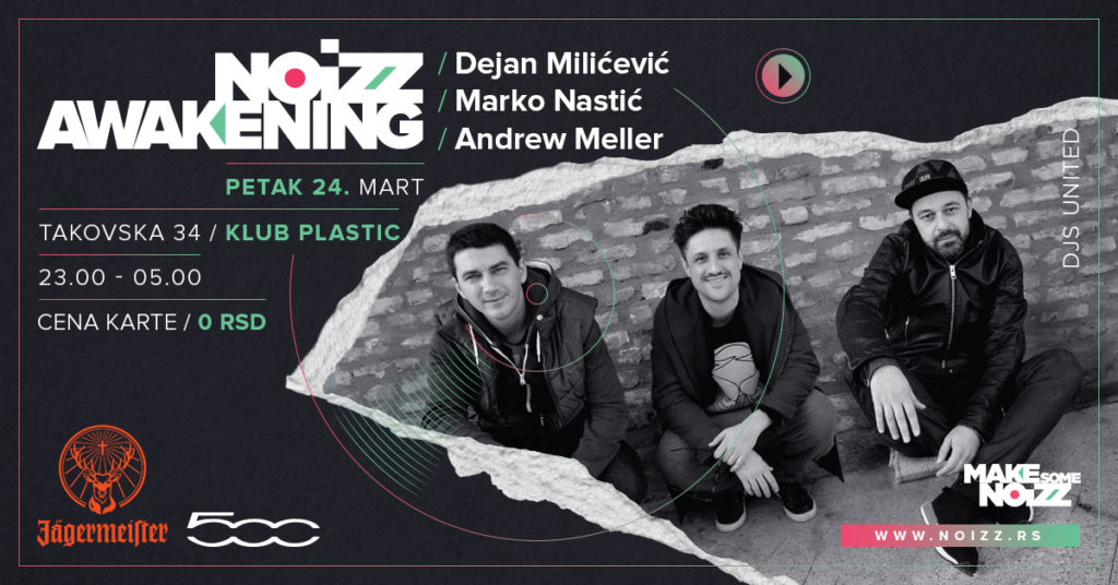 Zadovoljstvo nam je da vas pozovemo 24.marta u klub Plastic, gde će se održati velika NOIZZ AWAKENING žurka, prava prolećna eksplozija namenjena ljubiteljima elektronskog zvuka. Za sve koji znaju šta je vajb slobode i ples do topljenja uz haus i tehno, spremili smo muzičku poslasticu koju će nam za DJ pultom servirati tri virtuoza domaće scene. Dejan Milićević, Marko Nastić i Andrew Meller.