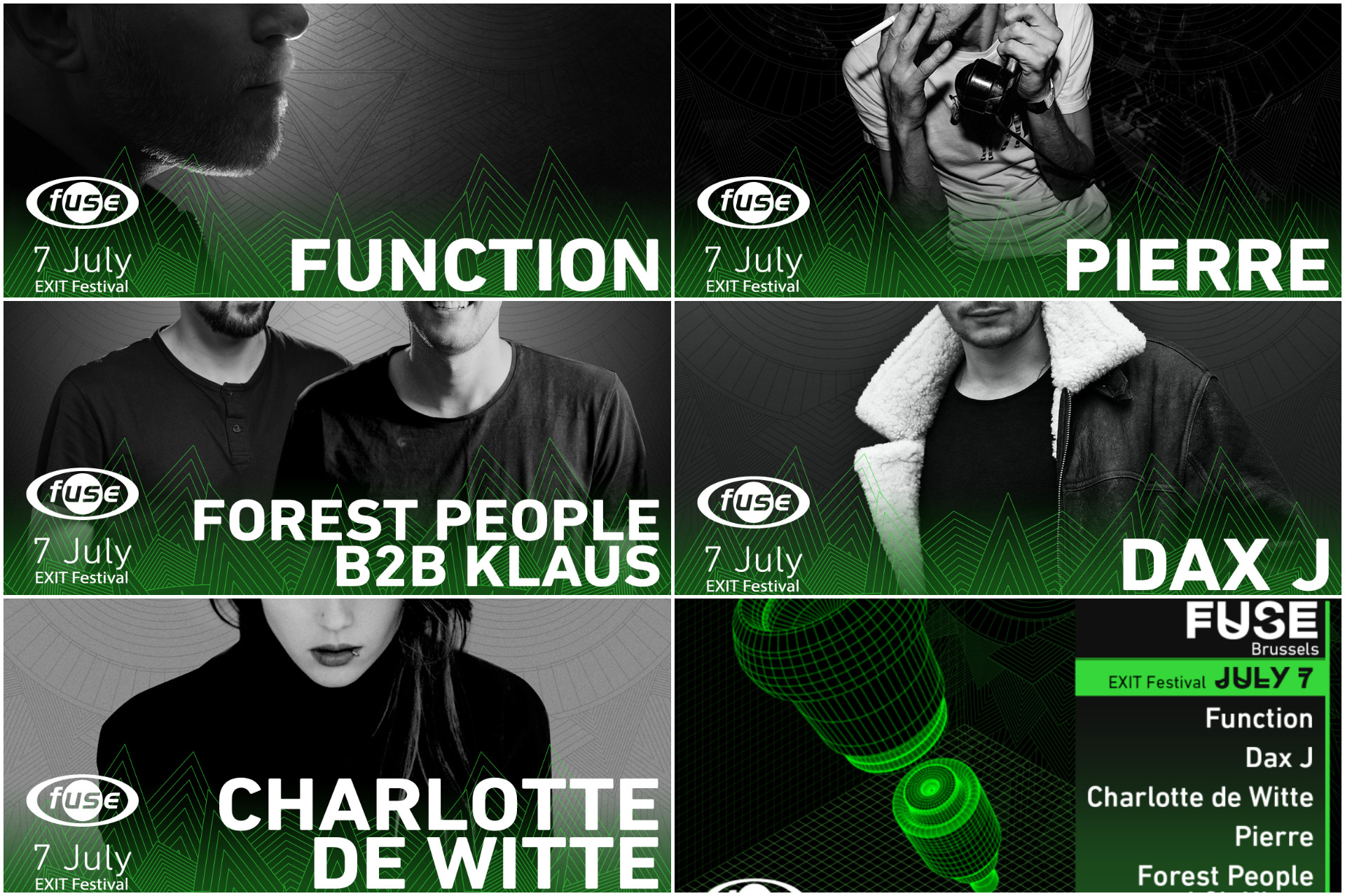 Nezaustavljivi britanski DJ i producent Dax J definitivno dolazi druge noći Exita u okviru Fuse noći, i to u terminu u kojem je nesumnjivo najbolji – „closing set“! Nimalo lak zadatak da opravdaju besprekoran ugled briselskog kluba imaće dva njegova najistaknutija rezidenta, trenutno najhvaljenija belgijska DJ zvezda Charlotte de Witte i prava legenda evropske klupske scene Pierre. Boje #NSNS bine braniće u tandemu bosanskohercegovački producent zavidne međunarodne karijere Forest People i vođa novosadske Public P ekipe Klaus.