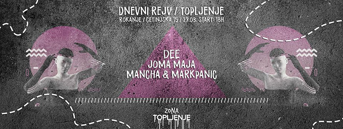 Najjače face beogradskog klabinga Dee, Joma Maja i Mancha & MarkPanic istopiće vas na Dnevnom Rejvu i napraviti sjajnu uvertiru pred njihov nastup u Zoni Topljenja 8. aprila!
