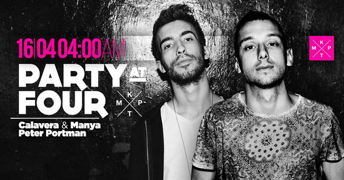 Uskršnje jutro, u nedelju 16. aprila u klubu KPTM donosi nam tech house groove uz opasnu ekipu! Calavera & Manya i Peter Portman spremaju vam prazničnu jutarnju vožnju koju nećete zaboraviti, a partijanje počinje već od četiri sata ujutru.