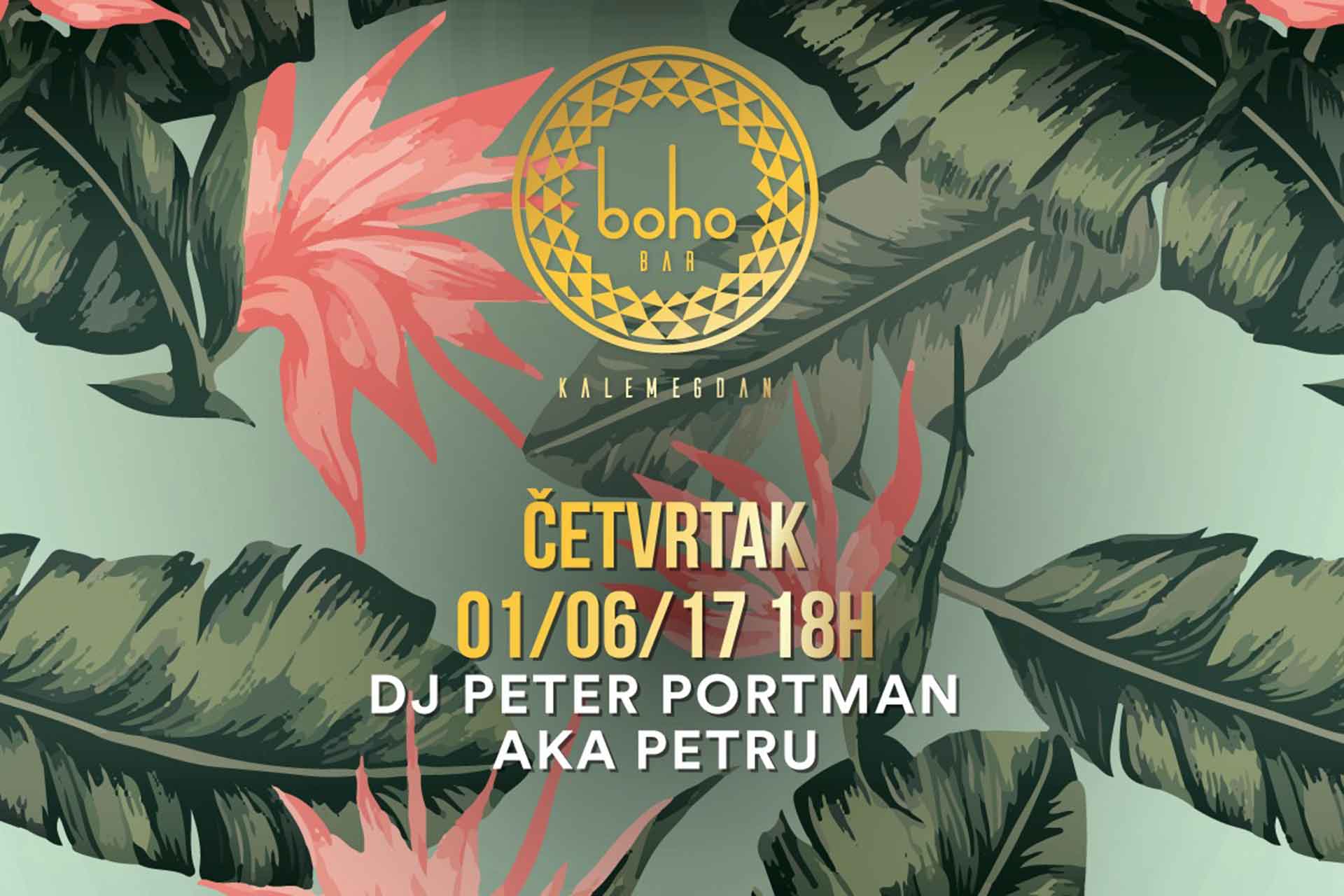 Autentičnost prostora koju Boho Bar pruža i muzika koja vas vodi kroz putovanje kroz epohe pod otvorenim nebom je prava kombinacija za jedinstveni doživljaj. Većina naše publike ga poznaje kao Peter Portman-a, ali na ovim žurkama predstavlja nam se u drugom svetlu. Očekujte eksploziju emocija i fuziju muzike koja će milovati vašu dušu i telo do ranih jutarnjih časova. Žurka počinje od 18h, u veče ulazimo uz ritmične trake i dočekujemo mesec i zvezde uz mešavinu ritmova i plesa u najležernijem baru u Beogradu.