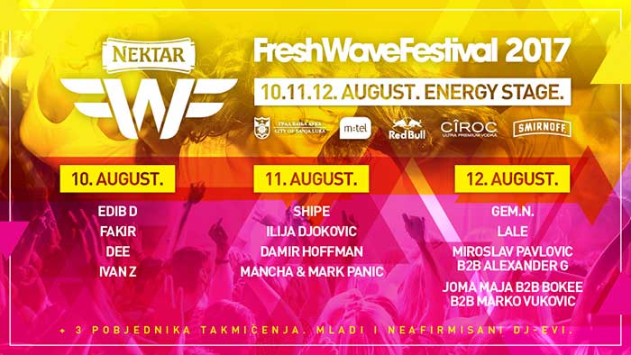 Nektar FreshWave Festival 2017 održaće se 10. 11. i 12. avgusta na banjalučkoj tvrđavi Kastel, a Energy Stage je bina koja će i ove godine okupiti najveća regionalna DJ imena! Na ovaj način FreshWave festival nastoji podržati razvoj i očuvanje domaće elektronske muzičke scene i odgovorno omogućiti prostor za predstavljanje još neafirmisanih i mladih izvođača. U tom duhu pokrenuli smo putem društvenih mreža i konkurs za izvođače koji će se pridružiti pozamašnoj ovogodišnjoj listi izvođača koji će nastupiti na Energy FreshWave bini festivala!