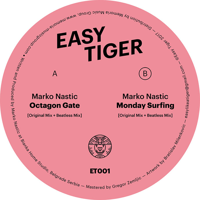 Jedan od vodećih artista elektronske muzike u regionu – Marko Nastić, je upravo lansirao svoj, vinyl only label baziran u Beogradu – Easy Tiger! Premijerno izdanje, “Octagon Gate” EP, stiže od Nastića lično, i donosi njegov prepoznatljivi modularni zvuk. Ploča sadrži dve klupske trake, „Octagon Gate“ i „Monday Surfing“, kao i njihove beat-less verzije, za drugačije slušalačko iskustvo.