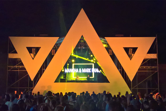 Odlazimo do glavnog ulaza da proverimo da li možda možemo već tada da podignemo akreditacije i tu ugledamo nov Main Stage i vidimo da je ove godine dosta truda i novca uloženo u produkciju, jer stejdž zaista izgleda jako lepo i za pohvalu. Na festival se opet vraćamo oko pola 12 – ulazimo bez problema i tu nas već dočekuje nekolicina promoterki raznih brendova koji su ove godine bili glavni (i jaki) sponzori ovog festivala. Možemo samo da pohvalimo gostoprimstvo i uslugu, a i cene pića koje su bile sasvim pristupačne za svačiji džep. Zapućujemo se ka Main-u gde nas dočekuju Mancha & Mark Panic, duo veoma dobro poznat i nama i KG publici. Sada već vidimo glavnu binu u punom sjaju i još više se oduševljavamo. Tri motiva VIBE festivala su ogromna, a srednji izrezan, iza koga je veliki LED ekran, a DJ-evi na momente izgledaju kao siluete, što je svakako zanimljivo videti.