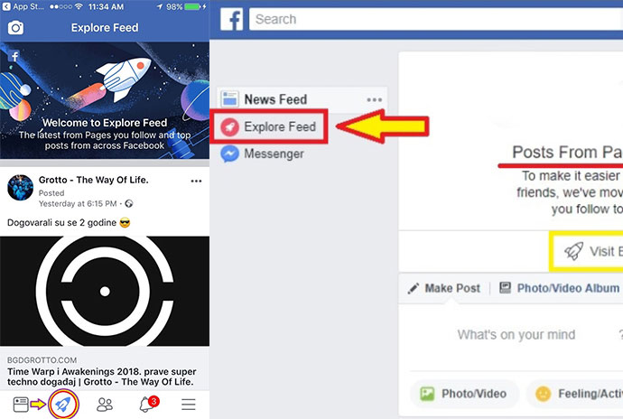 Od aprila 2017. Facebook je počeo da testira novu opciju u vidu „raketice“ koja se zove Explore Feed. Tehnički, Explore Feed je paralelan News Feed koji vama stoji po default-u kada uđete na Facebook. Razlika između Explore i News Feed-a je ta što će na Explore Feed-u prikazivati najzanimljiviji sadržaj sa stranica koje pratite ili prema onome što lajkujete, dok na News Feed-u izlazi samo ono što kače, pišu i share-uju vaši prijatelji i ljudi koje pratite. Ova promena zapravo ima veliki potencijal da bude jako dobra i korisna stvar svima nama!