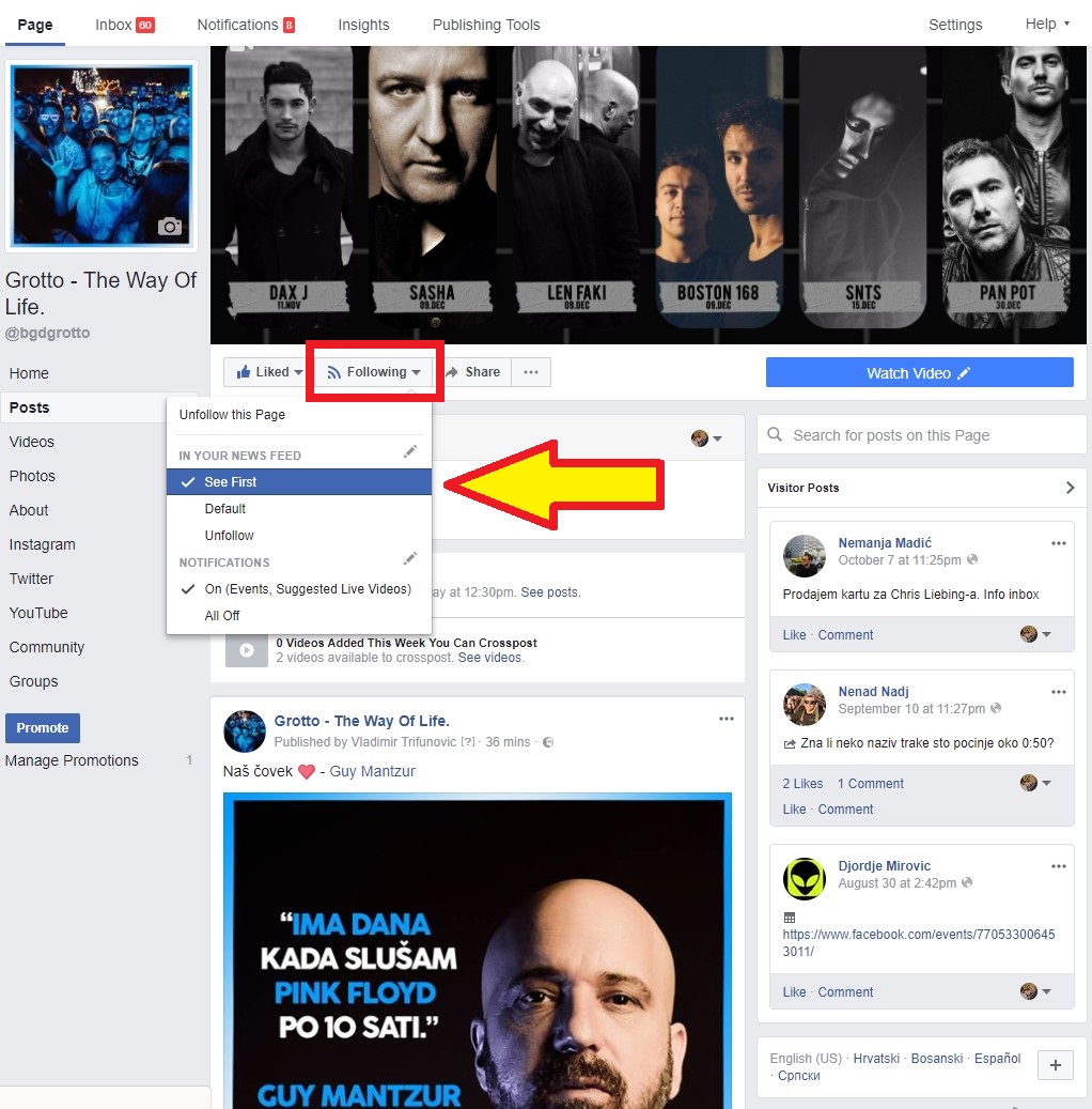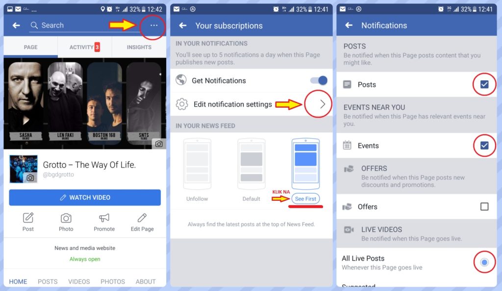 Moguće da vam je nešto već štiklirano kao opcija, tako da onda samo izignorišite. U slučaju da ne želite da vidite naše događaje „Events“ ili „All Live posts“ možete da to odštiklirate.