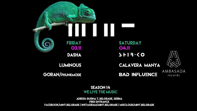 Legendarni beogradski klub Mint je otvorio svoja vrata 14. put zaredom i ove sezone će imati jedinstven program. Već ovog petka veče otvaraju Luminous, Dasha i Goran (Phunkmode) kako bi početak nove sezone zagrejali sa house i tech house groove-om uz uticaje svim mogućih žanrova elektronske muzike.