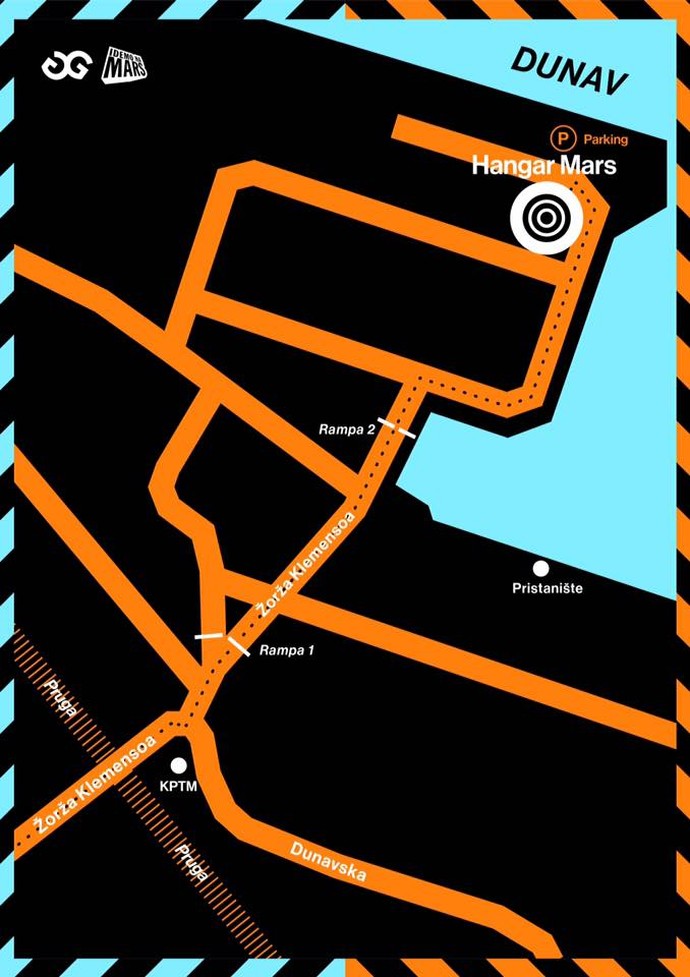 Ulaz u novi Hangar Mars je iz ulice Žorža Klemensoa (nastavak Francuske), nedaleko od kluba KPTM i biće vidljivo obeležen.