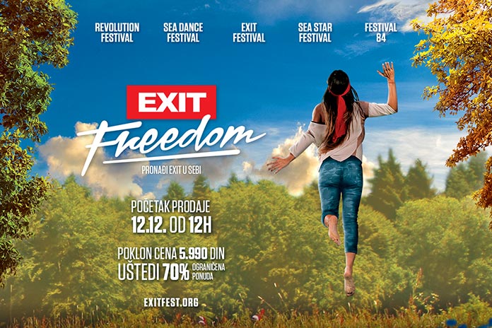 EXIT je jedan od retkih muzičkih festivala koji je izrastao iz pokreta za slobodu i koji od svog osnivanja ima snažnu društvenu misiju, a EXIT Freedom je globalni poziv na slobodu od robovanja materijalizmu, stereotipima i kolektivnim zabludama u kojima se danas nalazi naša civilizacija. Nakon što je EXIT Summer of Love u 2017. postavio rekord sa četiri festivala, EXIT Freedom biće dosad najveći festivalski poduhvat, ne samo u regionu, već i šire, jer će u 2018. okupiti čak pet festivala u Bosni i Hercegovini, Crnoj Gori, Rumuniji, Hrvatskoj i Srbiji.