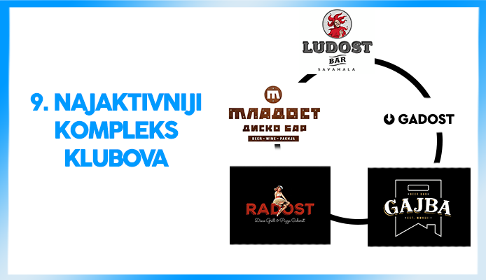 9. Najaktivni kompleks klubova – Ludost-Mladost-Gadost-Radost-Gajba