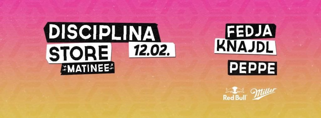 Prema rečima jednog od osnovivača koncepta Disciplina Store-a „ovaj inovativni brend koristi razmišljanja i priče iz svakodnevnog života različitih ljudi, različitog raspoloženja kao ideju i to kroz filter viđenja naših dizajnera prenosimo na naše proizvode kako bi DISCIPLINOVALI priču.“ U ponedeljak za vas vrteće jedan od najtraženijih DJ-eva BiH-a – Fedja Knajdl uz disco-funk legendu Peppe-a.