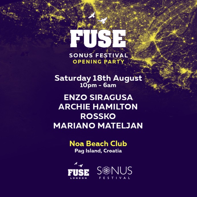 Sonus festival je ove godine pripremio i nulti dan festivala koji će se 18. avgusta po prvi puta održati u NOA Beach klubu na paškoj plaži Zrće. Za muzički program na specijalnom otvaranju festivala biće zadužena svjetski poznata FUSE ekipa iz Londona predvođena Enzom Siragusom i njegovim gostima Archie Hamiltonom, Rosskom i našim Marianom Mateljanom. Cijele noći pod otvorenim nebom, samo par metara od Jadranskog mora, posjetitelji će moći plesati uz zvuk FUSE ekipe koji su zaslužni za neke od najboljih afterpartyja na Sonusu, ali i organizaciji odličnih vlastitih partija diljem svijeta kao što su Fuse OFF Sonar party nedavno održan u Barceloni, FUSE večer u klubu Amnesia na Ibizi, nastup na Mdrnty Cruise brodu, HYTE partyju na Amsterdam Dance Eventu i mnogim drugim.