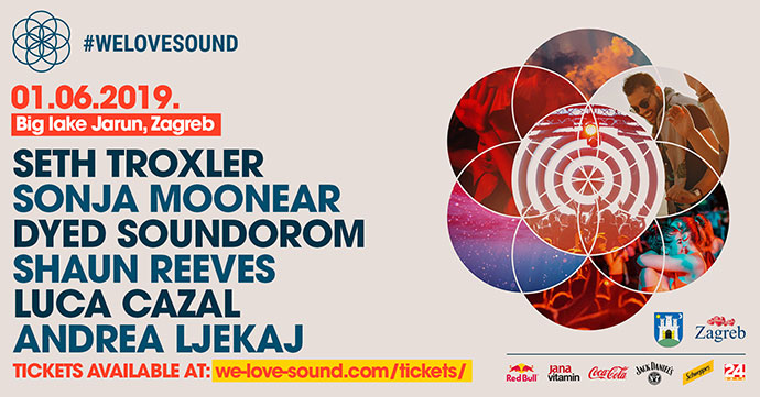 Otvaranje letnje sezone u Zagrebu, #WELOVESOUND Open Air održaće se u subotu, 1. juna 2019. godine na Velikom jarunskom jezeru, pored skate parka, s početkom u 16h i trajaće do 5h ujutro nakon čega sledi sad već tradicionalni afterparty čija lokacija će biti objavljena na Facebook Eventu.