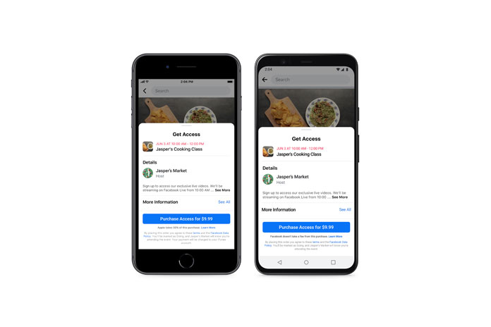 Trenutno Facebook stranice mogu održavati događaje na Facebook Live-u kako bi došle do šire publike, ali takođe su u fazi testiranja plaćenih događaja na Messenger Roomsu radi ličnijih i interaktivnijih susreta.
