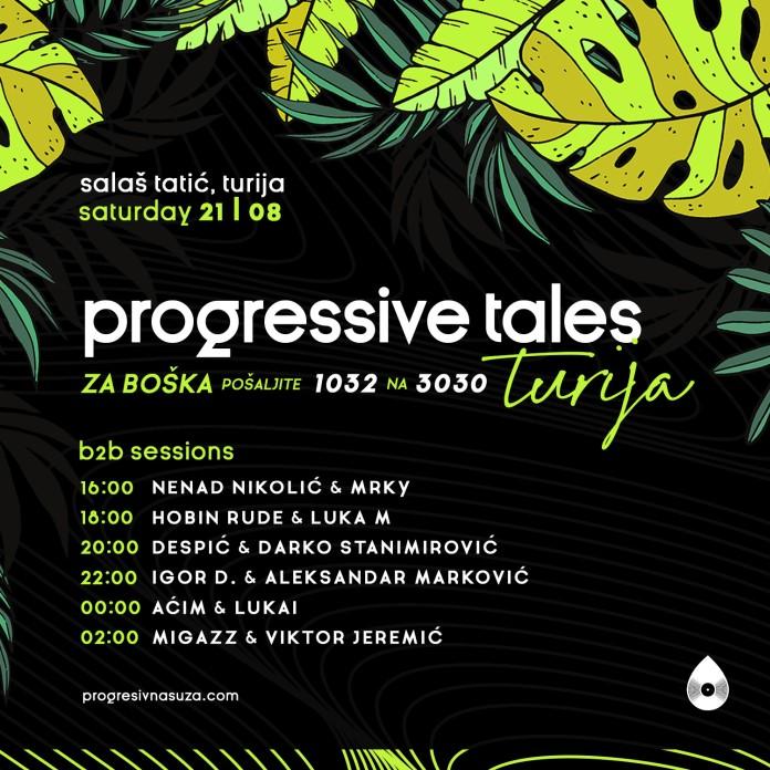 Prošle godine, ekipa Progresivne Suze je imala priliku da predstavi svoju seriju žurki Progressive Tales na potpuno drugačiji način i samim tim ljudima priredi novo iskustvo. Uz pomoć lokalnog stanovništa i MZ Turija, organizovan je humanitarni događaj za lečenje Lane Jovanović na kom je prikupljeno 33.000,00 din koji su uplaćeni na račun porodice male Lane.