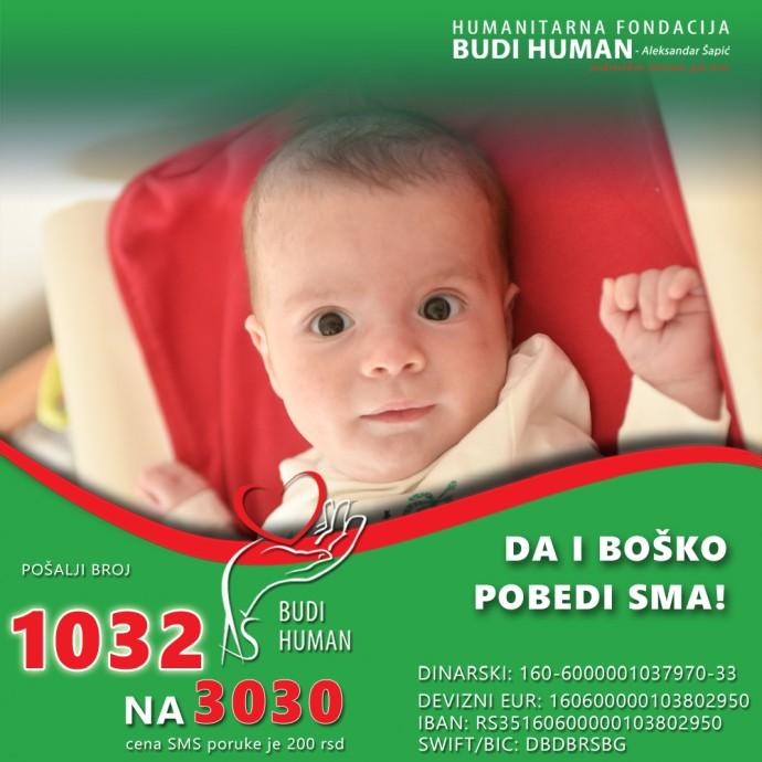 Bošku su sredstva potrebna za terapiju Zolgensma, lečenje u inostranstvu, rehabilitacije, fizikalne i okupacione terapije, za laboratorijske analize, ortopedska pomagala, medicinske aparate kao i za putne troškove i smeštaj. Roditelji pozivaju sve ljude dobre volje da daju svoj doprinos.