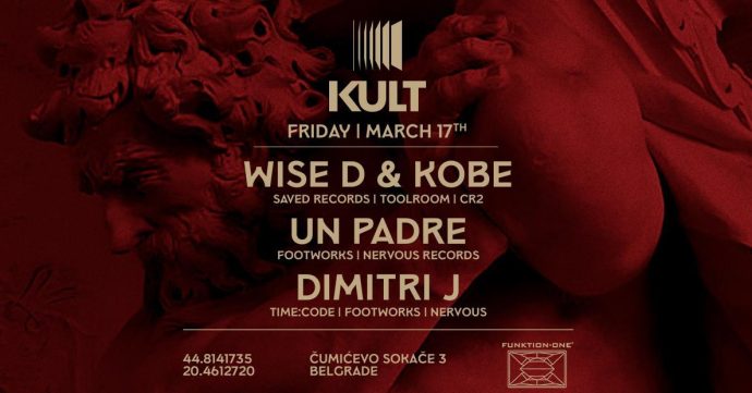 Petak je veče sa akcentom na dobar groove i besprekoran mix! Wise D & Kobe po prvi put pred publikom Kulta, predstaviće svoj jedinstveni techno fazon zbog kojeg u poslednje vreme postaju sve popularniji.